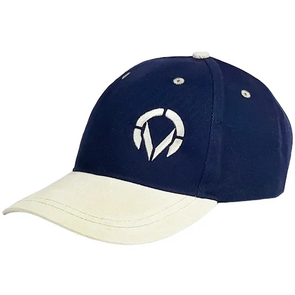 Tmavě modrá baseballová kšiltovka s béžovým kšiltem a výšivkou na čele. Velikost nastavitelná plastovým zacvakávacím páskem.