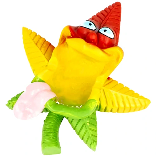 Polyresinový venkovní popelník v designu listu konopí je v trojbarevném Rasta provedení. Polyresin je druh pryskyřice, která je odolná vůči mechanickému poškození a vlivům počasí. Díky použitému materiálu je popelník vhodný nejen do interiéru, ale také současně pro venkovní použití. Popelník je vybavený dvěma odklady pro cigaretu.