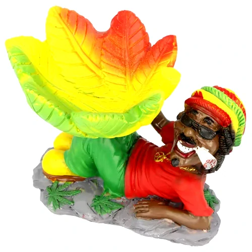 Venkovní polyresinový popelník v barevném provedení je v designu ležícího Rasty. Polyresin je druh pryskyřice, která je odolná vůči mechanickému poškození a vlivům počasí. Díky použitému materiálu je popelník vhodný nejen do interiéru, ale také současně pro venkovní použití. Popelník je vybavený třemi odklady pro cigaretu.