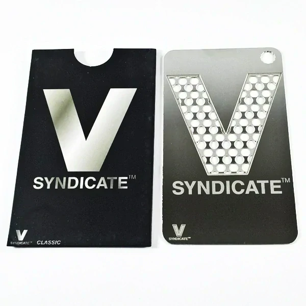 Ocelová drtící karta ve velikosti kreditky od značky V Syndicate. S ostrými dírkami pro přípravu kvalitní směsi. Funguje na principu struhadla. Vejde se do každé peněženky či kapsy. Délka: 8,5 cm, šířka: 5 cm.