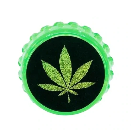 Minimalistická zelená plastová drtička v designu zátky s motivem Ananasový expres, ostré pyramidové hroty, magneticky uzavíratelná.