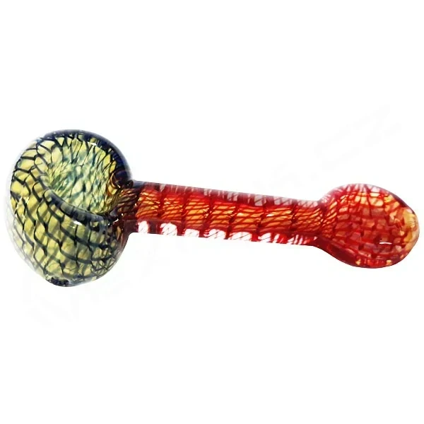 Skleněná fajfka s plochým náustkem z odolného borosilikátového skla s bočním turbem - s motivem modré a červené síťoviny.