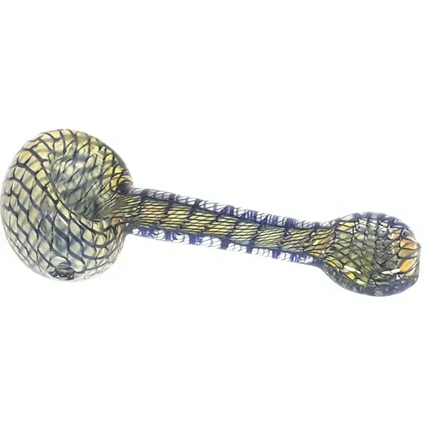 Skleněná fajfka z odolného borosilikátového skla s bočním turbem. Fajka se zploštělým náústkem.