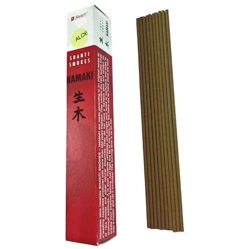 Japonské vonné tyčinky Namaki pro zklidnění mysli s vůní aloe. Dopřejte si chvíle harmonie s japonskými vonnými tyčinkami Namaki. Jemná vůně aloe, vytvořená ze vzácných dřevin a přírodních silic, přináší uvolnění po náročném dni a navozuje pocit klidu.