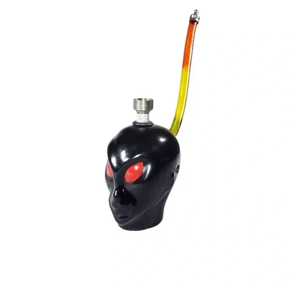 Keramický bong ve tvaru UFO hlavy s kovovým kotlíkem a rasta hadičkou, výška bongu 8 cm. Jedná se o ručně vyrobený produkt a jednotlivé kusy se od sebe mohou nepatrně lišit, stejně tak od produktové fotografie.