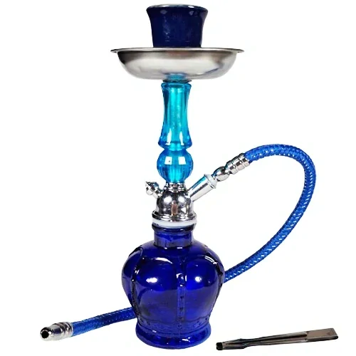 Minimalistická modrá vodní dýmka s keramickým kotlíkem. Součástí produktu jsou kleště na horké uhlíky.