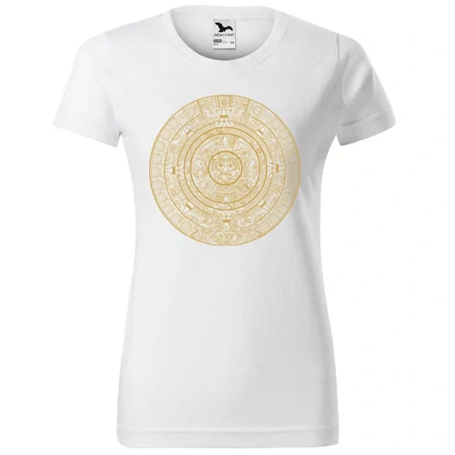 Bílé mandala tričko dámské s motivem mayského kalendáře. Vyrobeno ze 100% bavlny. Střední gramáž 160 g/m² pro pohodlné celoroční nošení. Kvalitní potisk na tričku Basic od Malfini zaručuje dlouhou životnost.