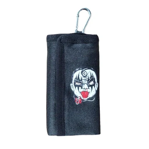 Minimalistická peněženka s punkovou lebkou na suchý zip s karabinou pro připnutí k oblečení – ideální na hotovost a doklady při koncertu, sportu či na cestách