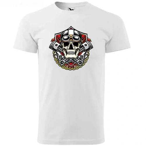Bílé pánské rockové tričko s písty ze 100% bavlny v gramáži 160 g/m² pro pohodlné celoroční nošení.