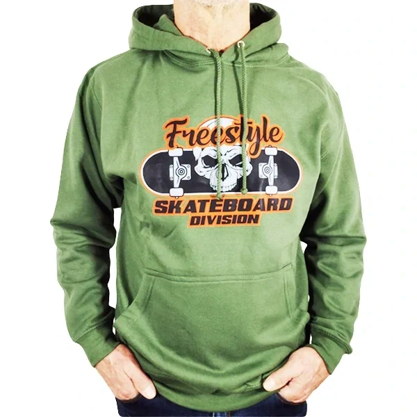 Zelená pánská skateboard mikina s kapucí a propojenou kapsou s motivem Division. Odolný potisk z naší dílny na kvalitní mikině od společnosti Malfini.