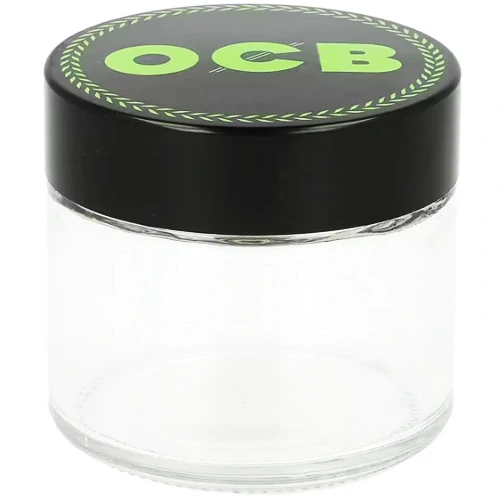 Uzavíratelná schovka na sušené konopí a jiné byliny. Skleněná schovka OCB nebo-li stash na konopí vyrobená z čirého pevného skla. Skladovací nádoba se uzavírá na závit pomocí plastového víčka. Díky dokonalému uzavření zůstanou bylinky správně uskladněné a také se zabrání úniku jejich zápachu.