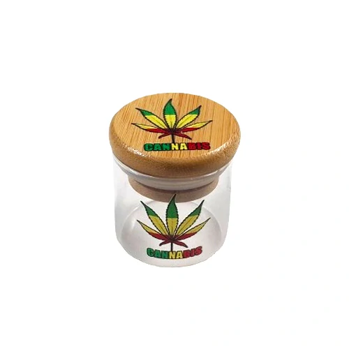Sklenice na marihuanu s dřevěným víčkem Cannabis 45 mm