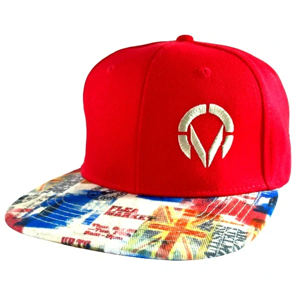Červená streetová unisex kšiltovka s rovným kšiltem a béžovou výšivkou. Plastový zacvakávací pásek umožňuje snadné nastavení velikosti.