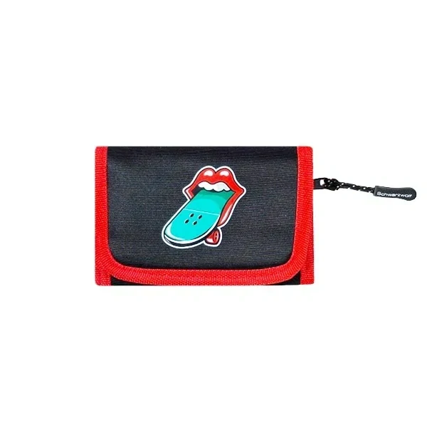 Originální černá textilní šrajtofle s červeným lemem na bankovky, mince a kreditky s odolným potiskem z naší rodinné dílny. Bezpečné zapínání na suchý zip.
