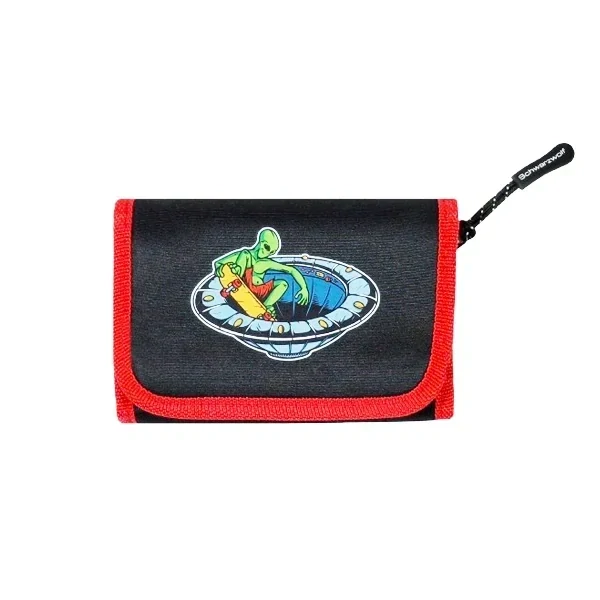 Černá textilní peněženka se skate jazýčkem na bankovky, mince i karty, potisk je originální z naší dílny - se zapínáním na suchý zip