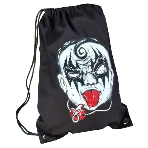 Vak na záda s kapsou ze 100% bavlny s motivem Punk is not dead, rozměry 47x37 cm, vnitřní kapsa na zip, zpevněné rohy s kovovými kroužky, stahovací šňůrky